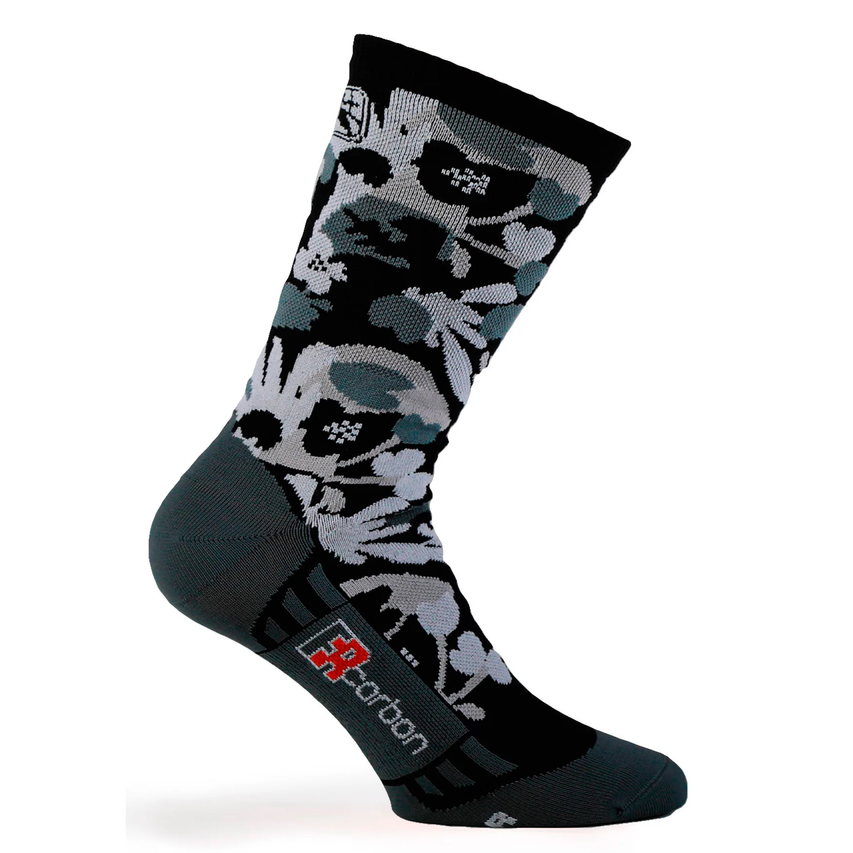 Calcetines altos verano Mujer FR-C FLOWERS 16cm Blanco/Negro