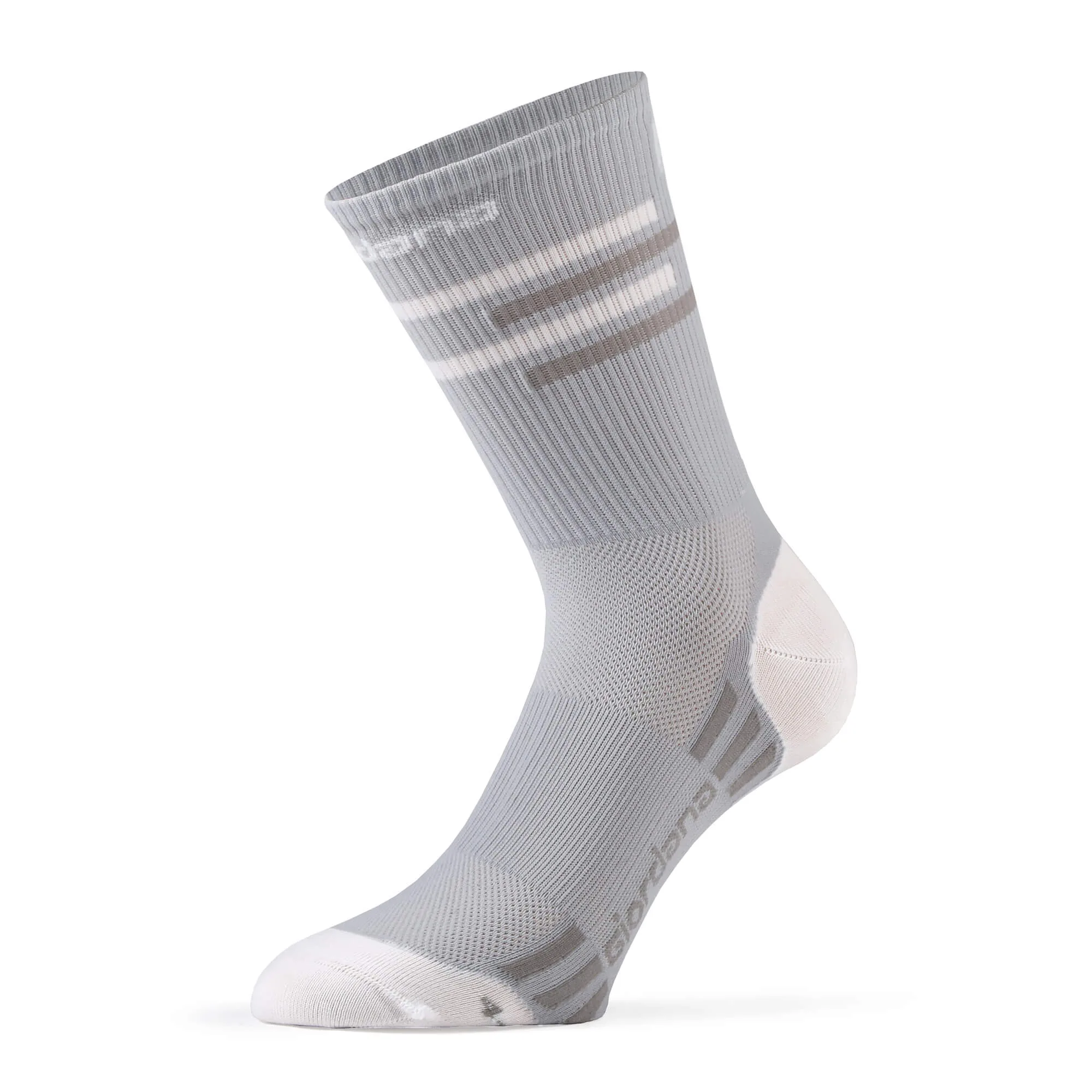 Los Calcetines altos LINES 18cm Gris/Blanco están hechos con un tejido liviano que regula la temperatura de tus pies a la vez que sirve de apoyo y proporciona una comodidad excepcional.