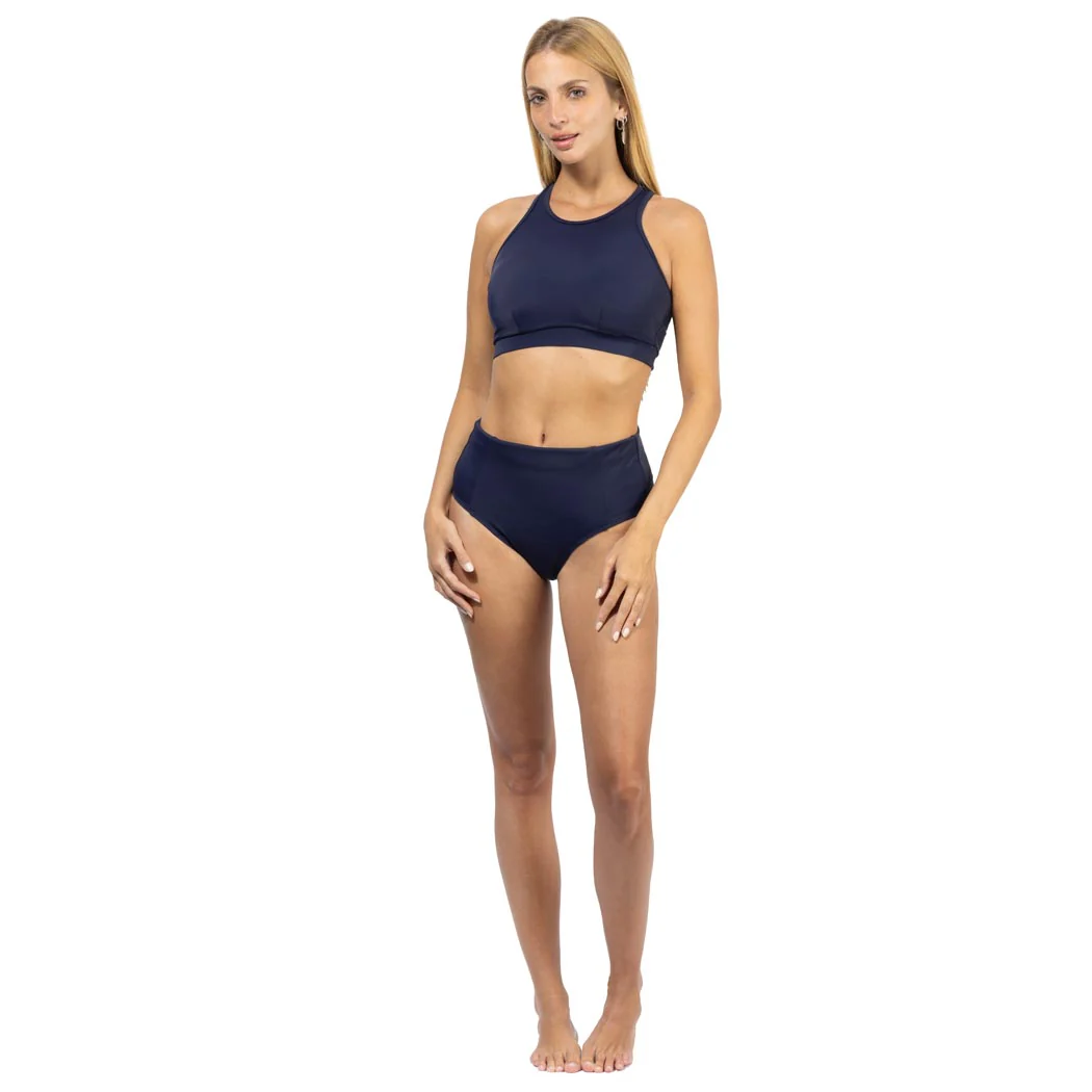 No puedes perderte de este clásico básico, para tus dÃas de playa o en la alberca, te presentamos este calzon liso alto en color marino, que estiliza tu figura y en efecto visual alarga tus piernas, reforzado por el frente, cuenta con control abdominal para acentuar tu figura, esta prenda esta recomendada para actividades acuáticas, y cuenta con nuestra recomendación UPF50+ que mantendrá tu piel protegida de los rayos solares. Esta prenda la puedes combinar con otras prendas altas de nuestra colecciones de Fullsand® o Coralina®. De tela fresca, suave y ligera que no guarda olores y también es de secado ultra rápido.