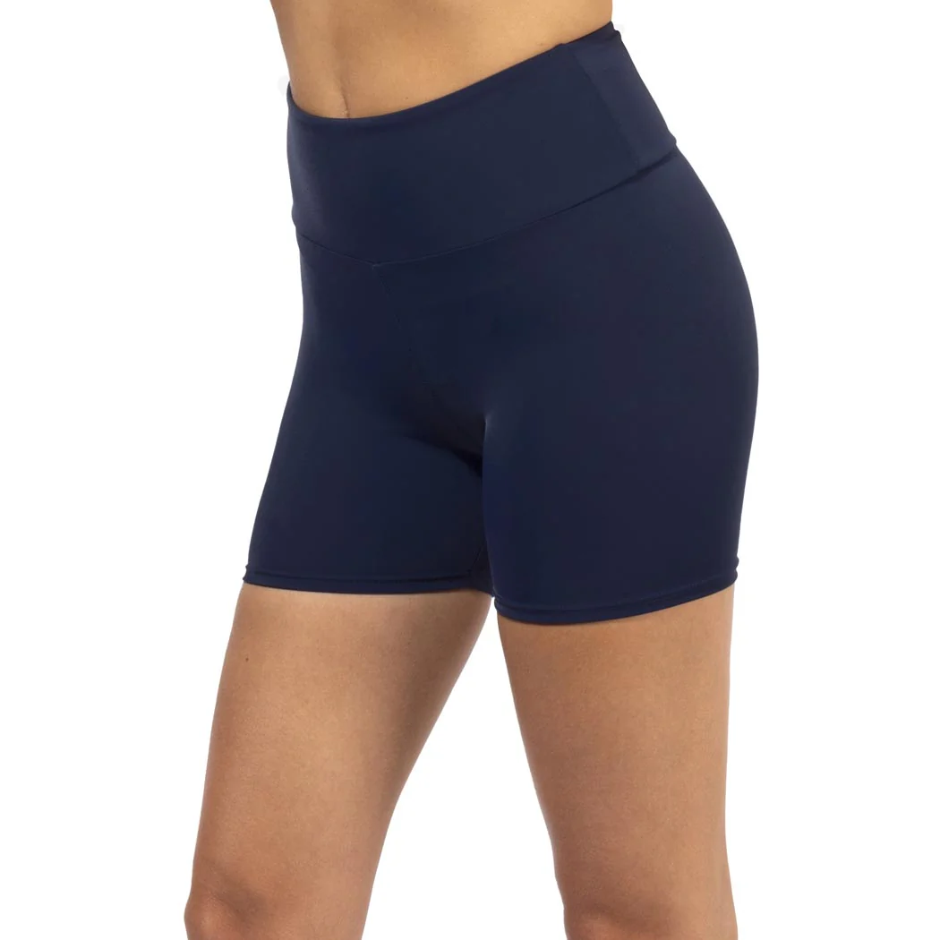 Moldea tu silueta con seguridad y confort usando nuestro traje de baño tipo short para mujer en color azul marino, diseñado con retina alta para estilizar la figura, control abdominal y cobertura total hasta la mitad del muslo; confeccionado en resistente fibra de nylon plus, cuenta con tecnologÃa de secado rápido y protección UV UPF50, ideal para disfrutar de tus actividades acuáticas con libertad, soporte y estilo.