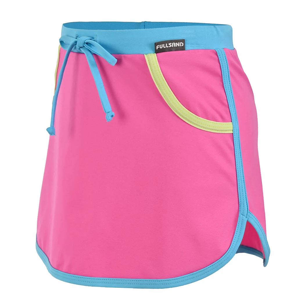 Diseñada para moverse con libertad y estilo, esta falda skort con short interno para niña combina la apariencia femenina de una falda con la comodidad y seguridad de un short integrado. Con protección solar UPF 50+ y tela de secado rápido, es ideal para actividades al aire libre, deportivas y acuáticas. Su corte en lÃnea A brinda un ajuste cómodo y favorecedor, mientras el short interno de lycra lisa proporciona mayor cobertura y confort. Incorpora elástico en pretina y jareta de ajuste en cintura para un ajuste perfecto, además de encintado en ruedo y simulación de bolsa en colores contraste que aportan un toque moderno y deportivo. La etiqueta TAB bordada con logo en la pretina añade un detalle distintivo que completa su diseño funcional y con estilo.